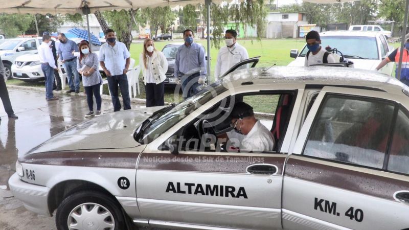 En coordinación con la Delegación del Transporte Público en la Zona Sur de Tamaulipas, también se tomó la temperatura a cada uno de los conductores y se les entregó cubrebocas y gel antibacterial.