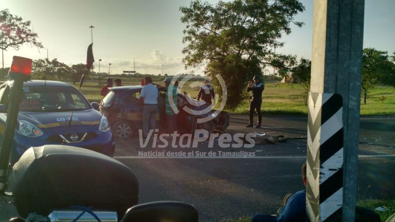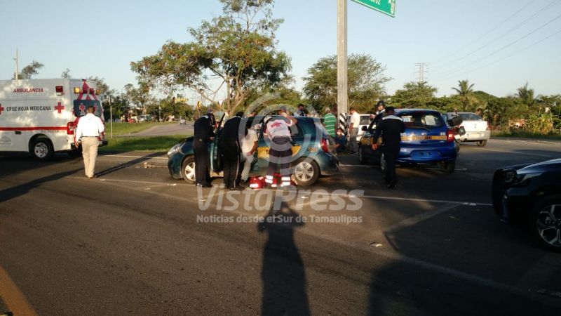 Tampico.- Un tráiler no respetó una señal de alto y provocó un accidente vial en la carretera Tampico-Valles, a la altura del faro, en dónde un taxi resultó dañado y sus pasajeros lesionados.