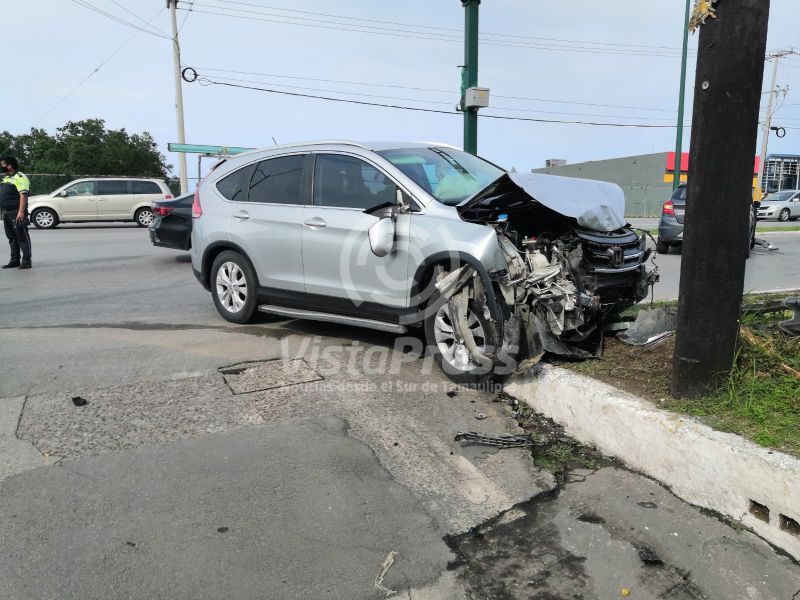 Tampico, Tam.- Un fuerte choque registrado frente al aeropuerto internacional de Tampico dejó como saldo dos personas lesionadas y cuantiosos daños materiales.