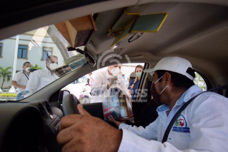 Teniendo como objetivo contrarrestar la crisis económica derivada por la pandemia del COVID 19, el Gobierno Municipal de Altamira continúa generando acciones a favor de los sectores más vulnerables y en esta ocasión, la alcaldesa Alma Laura Amparán Cruz, junto a la presidenta del Sistema DIF Altamira, Alma Laura Hernández Amparán, y el secretario de Bienestar Social, Alfredo Polanco Aguilar, hizo entrega de despensas con productos de la canasta básica a conductores de vehículos de ruta y pertenecientes a las diferentes bases de taxis que operan en el municipio.