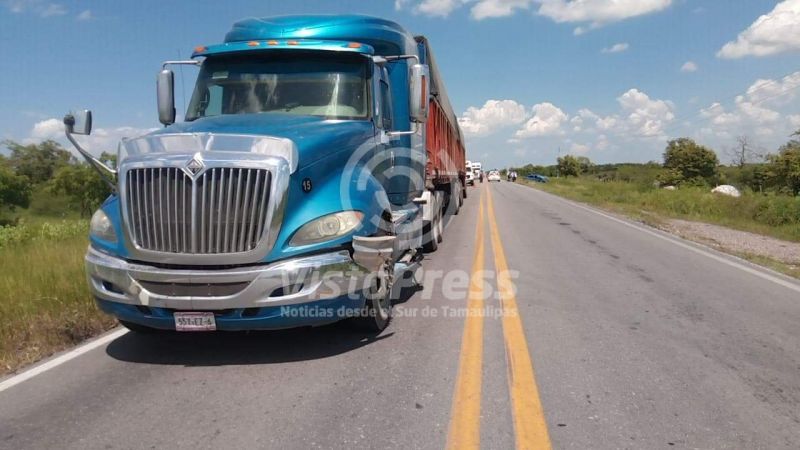 El accidente sobrevino de acuerdo a testigos cuando el conductor de un tráiler invadió el carril de circulación impactandose contra el automóvil marca Chevrolet; derivado del fuerte golpe la unidad compacta salió de la carpeta de rodamiento.