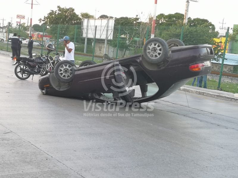 Tampico, Tam.- Con lesiones diversas resultó el conductor de un carro particular que volcara tras sufrir una falla mecánica la tarde de este domingo frente a la colonia López Portillo.