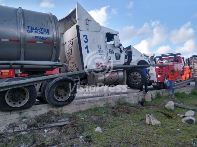 En ese punto volcó el tráiler de la marca Kenworth color blanco, y que remolcaba una pipa que se presume transportaba agua.