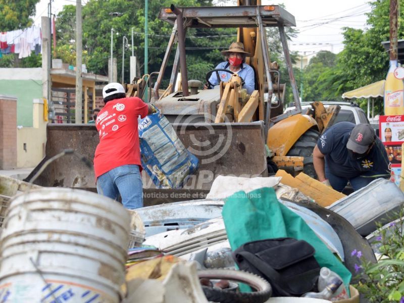 Sumando esfuerzos con la Secretaría de Salud de Tamaulipas y el área de Vectores de la Jurisdicción Sanitaria Número 12, la presidenta municipal Alma Laura Amparán Cruz encabezó una jornada de descacharrización y eliminación de criaderos de mosquitos en la colonia Los Arados, ubicada en la zona de Monte Alto.