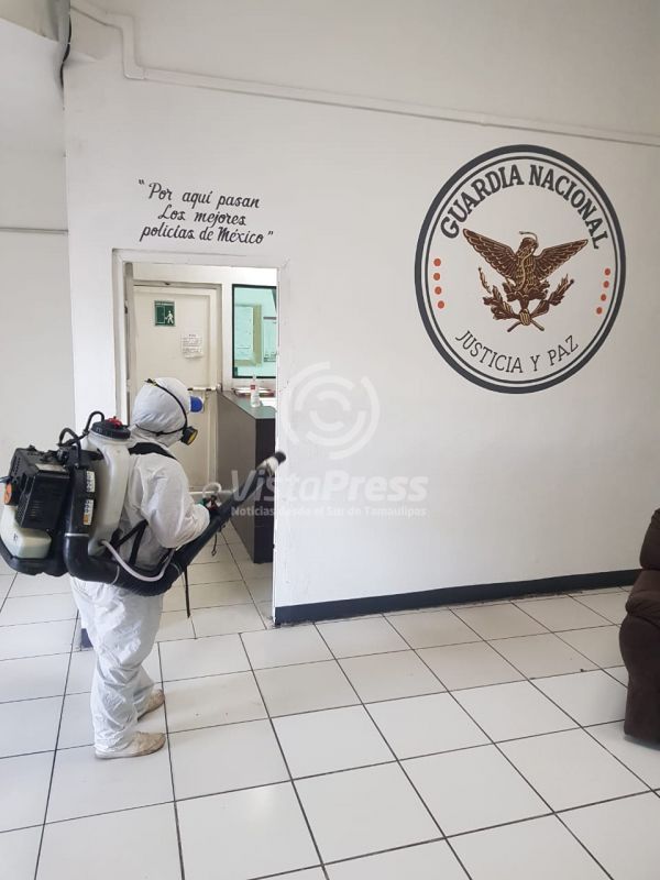 La cuadrilla de sanitización de la Secretaría de Servicios Públicos estuvo en las instalaciones de la Fiscalía General de la República (FGR) y de la Guardia Nacional donde efectuó la aplicación del agente biológico para eliminar la presencia de virus, bacterias y microbios que pudieran representar una amenaza a la salud de la personas.