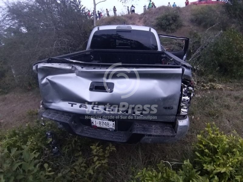 El accidente se registró a las 19:30 horas en el referido tramo carretero en donde participaron una camioneta de la marca Toyota Tacoma en color gris y una camioneta Ford Lobo doble cabina en color rojo.