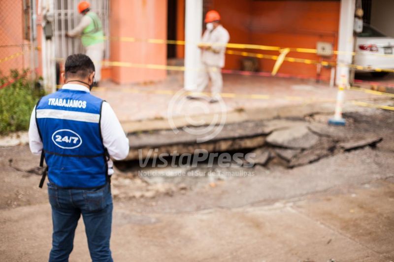 Esta tarde personal del organismo operador del agua en la zona conurbada atendió un reporte de fractura de pavimento en la calle Francisco Sarabia entre Álvaro Obregón y Guillermo Prieto de la colonia Ampliación de la Unidad Nacional en Cd. Madero.