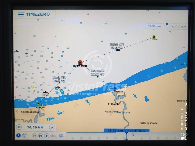 El Centro de Control de Tráfico Marítimo (CCTM) de la Sonda Campeche se escucha al operador cuestionando sobre el ataque, -es real o es un zafarrancho-, «es real, es real, nos están tirando plomazos».