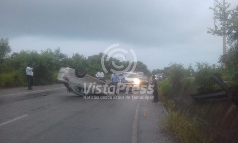 El hecho se registró en el carril de sur a norte del referido tramo carretero que conecta a Altamira con Ciudad Madero a la altura de una concretera, en donde terminó la unidad de la marca i10 con las llantas hacia arriba.