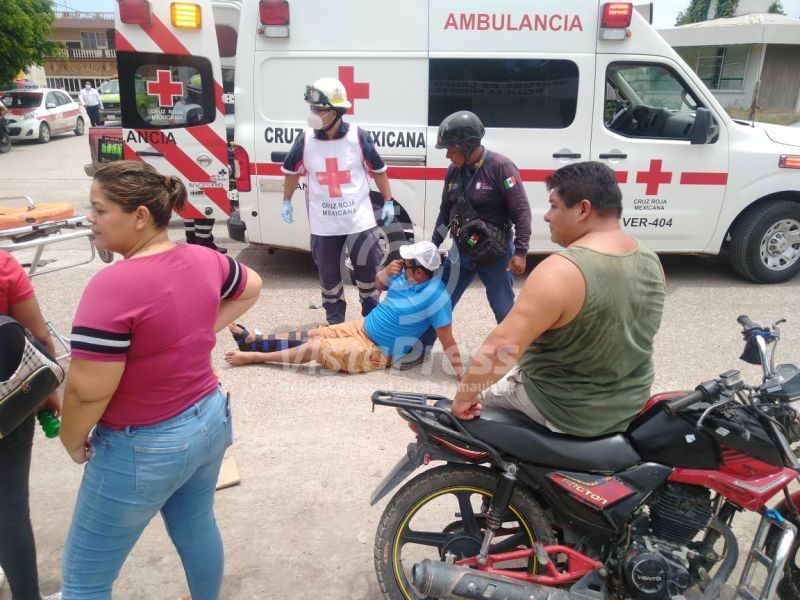 Pánuco, Ver.- Brutal colisión protagonizaron un automóvil compacto y motociclista, cuando la primera unidad no hizo su alto, embistiendo de forma dramática al motorizado que terminó lesionado.