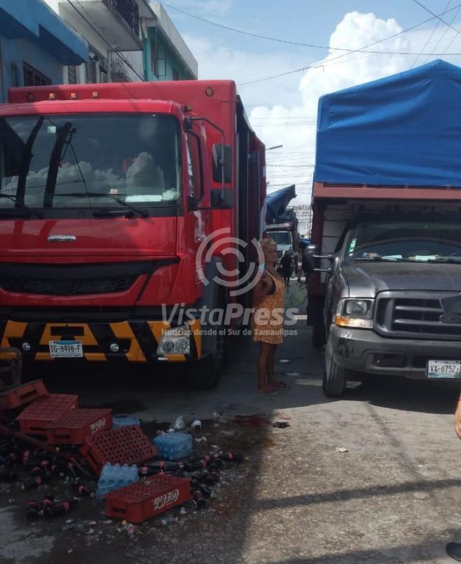 Tampico, Tam.- Un repartidos de la empresa refresquera de la Coca-Cola, fue arrollado por una camioneta de carga, por lo que fue trasladado a un hospital tras las lesiones.