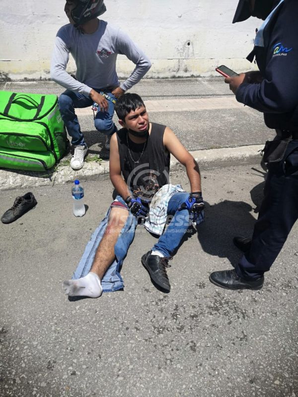 Tampico, Tam.- Un repartidor de comidas de la empresa virtual Uber Eats sufrió una fuerte lesión en una de sus extremidades inferiores, luego de derrapar a bordo de la motocicleta, siendo auxiliado en primer término, por agentes de Tránsito y posteriormente paramédicos de la Cruz Roja.