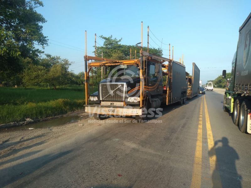 Pánuco, Ver.- Un tráiler con góndola, provocó aparatosa carambola en donde se involucraron un auto compacto, y una camioneta.
