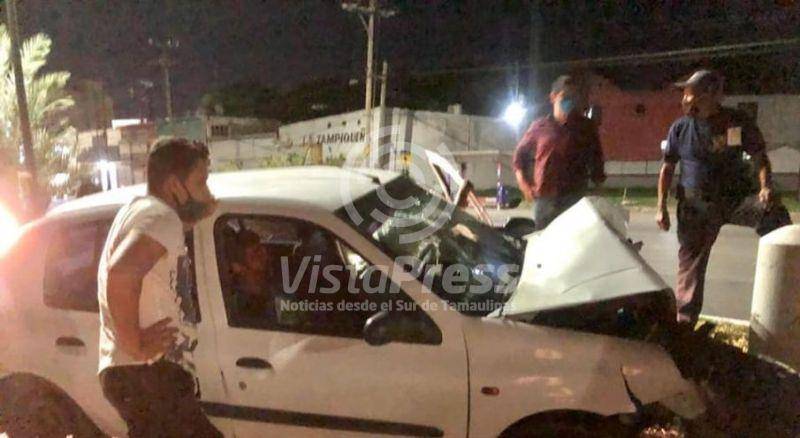 Tampico, Tam.- Un hombre y un menor de edad resultaron con lesiones al chocar en el vehículo particular en contra de un muro de contención frente al Aeropuerto Internacional de Tampico.
