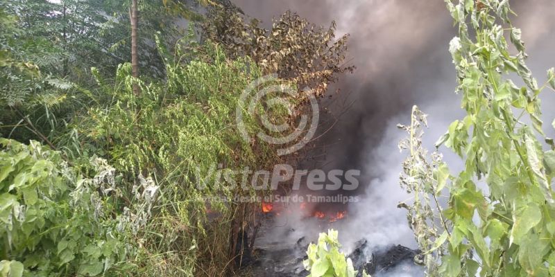 Madero, Tam.- Fuerte incendio de zacatal y llantas se registró la tarde de este lunes en la colonia Emiliano Zapata, sector Tierra Negra, lo que alertó a los cuerpos de contraincendio.
