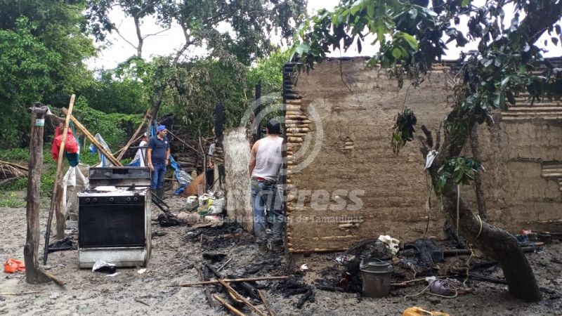 Pánuco, Ver.- Una humilde vivienda ubicada en un ejido, alejado de la cabecera municipal, prácticamente quedó reducida a cenizas.