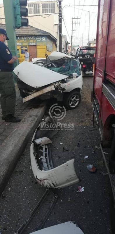 Fue alrededor de las 08:00 horas que se suscitó este accidente en la esquina de las calles Cristóbal Colón y José de Escandón de la zona centro de Tampico, en donde se registra este impresionante accidente vial.