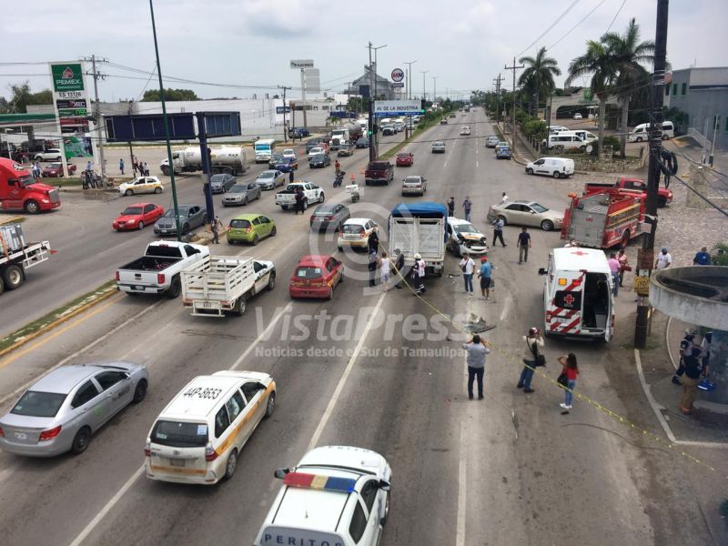 El lugar del impacto fue acordonado por elementos de Tránsito, arribando también los Bomberos de Altamira y paramédicos de la Cruz Roja.