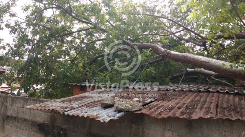 Cerca de las 10 de la mañana se dio el reporte de la caída de un árbol sobre una vivienda de madera, esto en la calle Jalisco y Avenida del Maestro de la colonia Las Conchitas.
