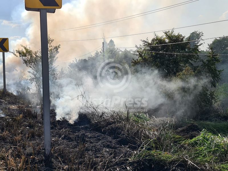 Pánuco, Ver.-Un incendio de pastizal, a punto estuvo de convertirse en tragedia, ya que las llamas por poco llegan a una casa.