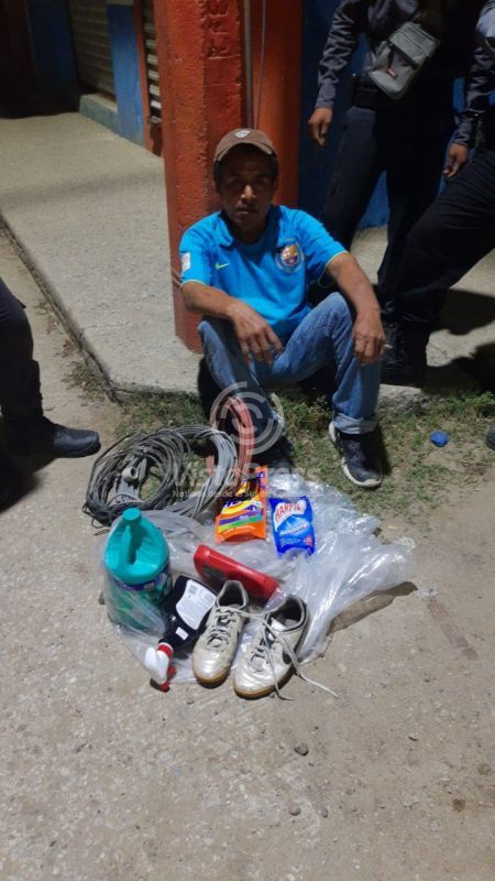 El vigilante nocturno pidió apoyo de sus compañeros, copando al sujeto instantes después; en una bolsa de plástico transparente, que previamente había tirado, llevaba, cable, artículos de limpieza y unos tenis.