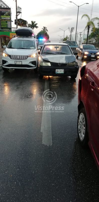 Tampico, Tam.- Un choque entre tres vehículos se registró la mañana de este miércoles en la transitada Avenida Hidalgo; por fortuna no hubo personas lesionadas.