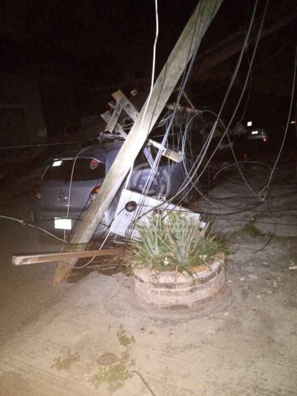 En su caída, también ocasionó la caída de otro poste, esto debido al arrastre del cableado eléctrico tras la caída del primero.