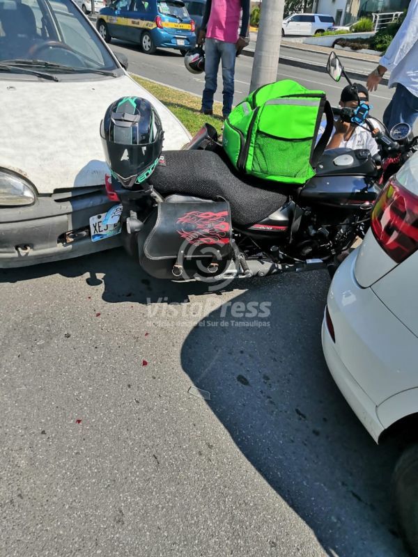 Tampico, Tam.- Un repartidor de comidas de la plataforma Uber casi muere aplastado entre dos vehículos, luego de que se registrara un choque por alcance en la prolongación de la Avenida Hidalgo.