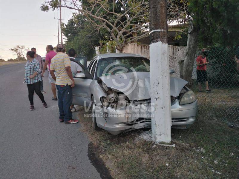Pueblo Viejo, Ver.-Cuatro personas lesionadas, tres hombres y una mujer, fue el saldo de un choque de una unidad compacta, que se impacto contra un poste de cemento.