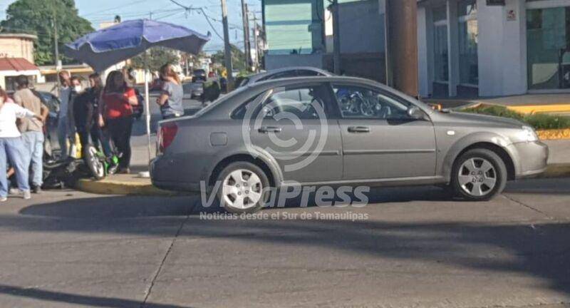 Elementos de Tránsito de Ciudad Madero llegaron al punto del choque solicitando la presencia de una ambulancia de Cruz Roja zona sur para valorar al herido.