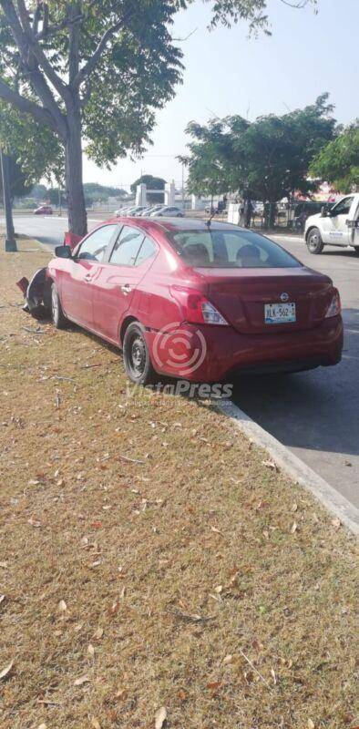 Tampico, Tam.- Fuerte choque de un vehículo compacto se registró la tarde de este jueves en donde el conductor dejó la unidad estampada en un árbol.