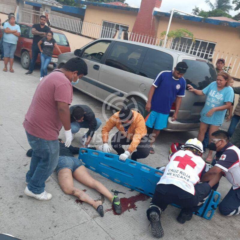Tampico, Tam. Con fuerte lesiones resultó una pareja de motociclistas quienes se impacta tan en contra de un autobús de transporte público en la zona norte de esta ciudad.