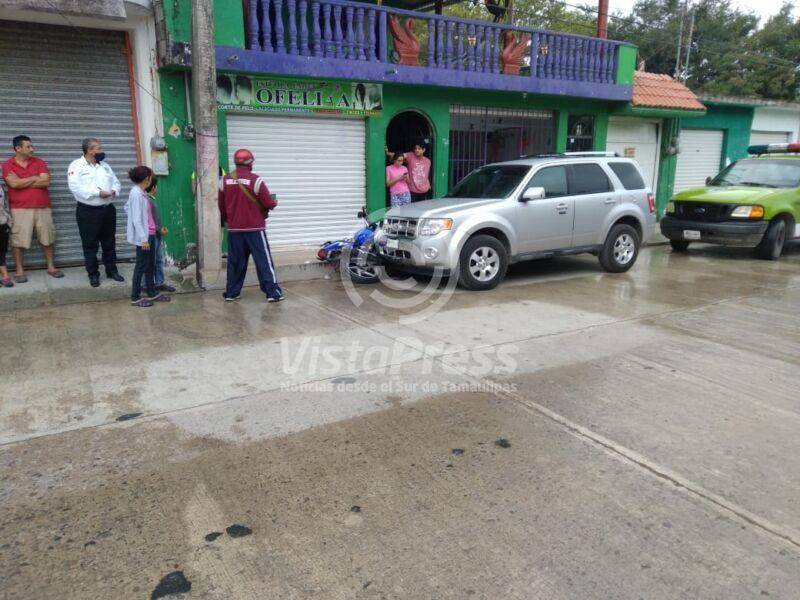 Pánuco, Ver.-Un muchacho que viajaba en un motocicleta luego de resbalar de su frágil unidad motriz, se impacta contra una camioneta resultando lesionado.