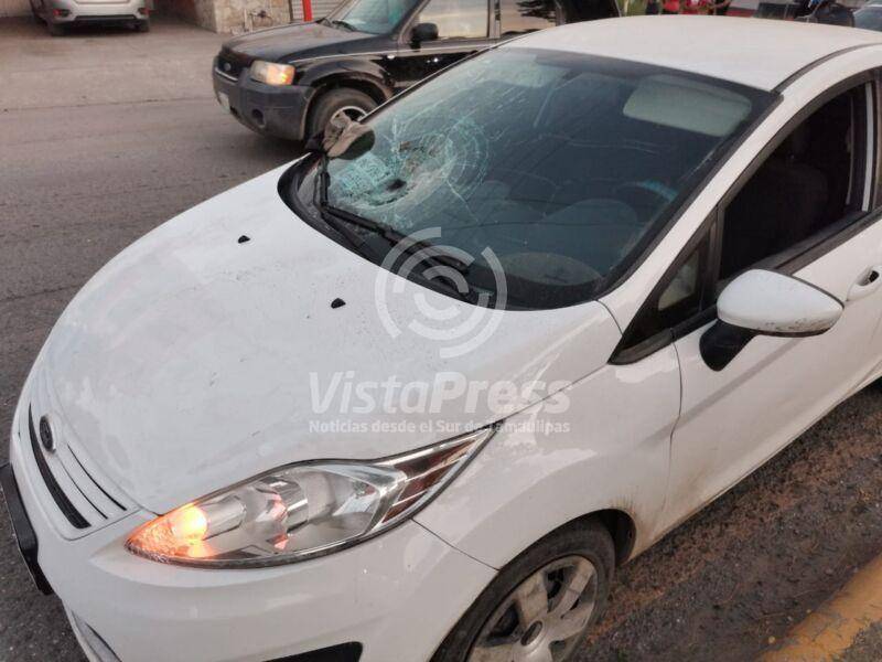 De acuerdo a lo informado, el automóvil de la marca Ford tipo Fiesta color blanco de modelo reciente y con placas del estado de Tamaulipas, descendió del puente presuntamente a gran velocidad y justo cuando se atravesaba el peatón lo embistió rebotando en el parabrisas.