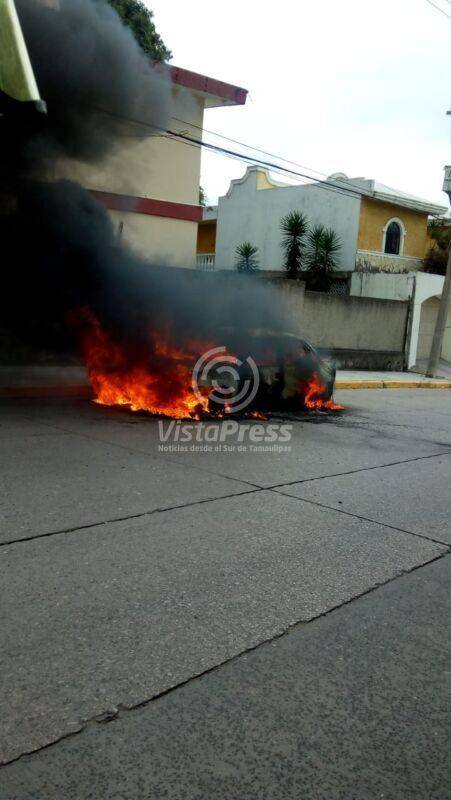 Madero, Tam.- Debido a un corto circuito, un vehículo particular quedó envuelto en llamas, sin que los Bomberos, pese a su llegada oportuna, pudieran evitar que quedaran sólo cenizas.