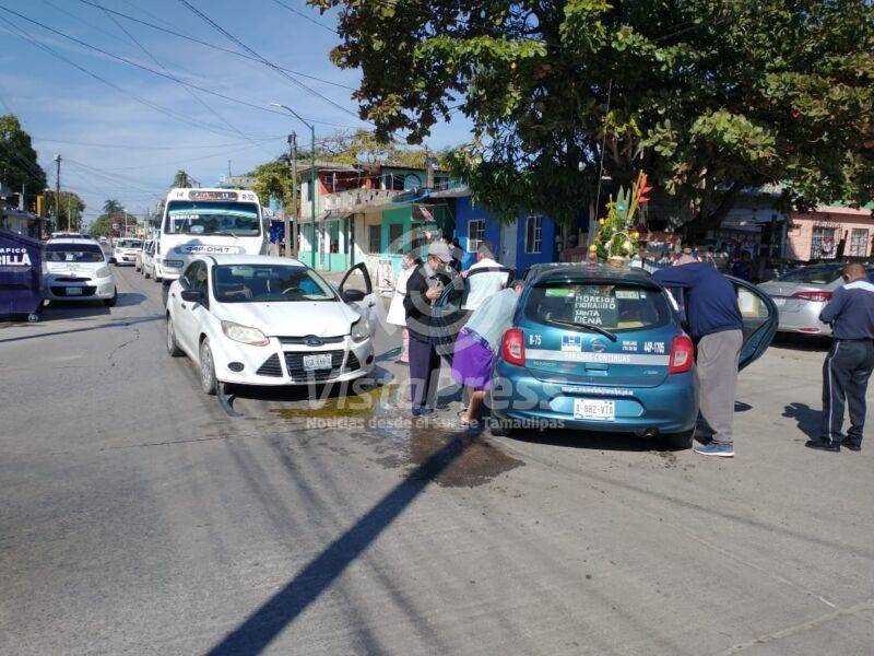 El percance se suscitó alrededor de las 11:00 horas de este martes en la esquina de las calles Vicente Guerrero y Zaragoza, entre un carro de la marca Ford Fiesta en color blanco y un carro Nissan March de la ruta Tampico-Morelos.