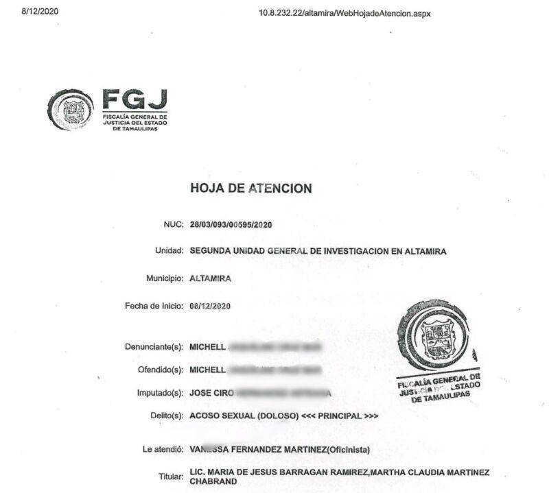 Altamira, Tam.- En dos ocasiones en este mes de diciembre, el ex diputado local, José Ciro Hernández Arteaga fue denunciado por el delito de acoso sexual doloso; una en la fiscalía de Altamira y la segunda en Ciudad Madero. El ex legislador aceptó que una de las denuncias que fueron presentadas, sin embargo niega los hechos que se le imputan.