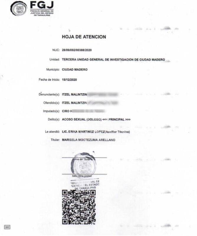 Entre tanto, el pasado 15 de diciembre, en la Tercera Unidad General de Investigación de Ciudad Madero fue presentada otra denuncia penal en su contra por los mismos delitos con el folio 28/09/092/00388/2020. El delito fue denunciado por quien se identificó como Itzel Malintzin “H”.