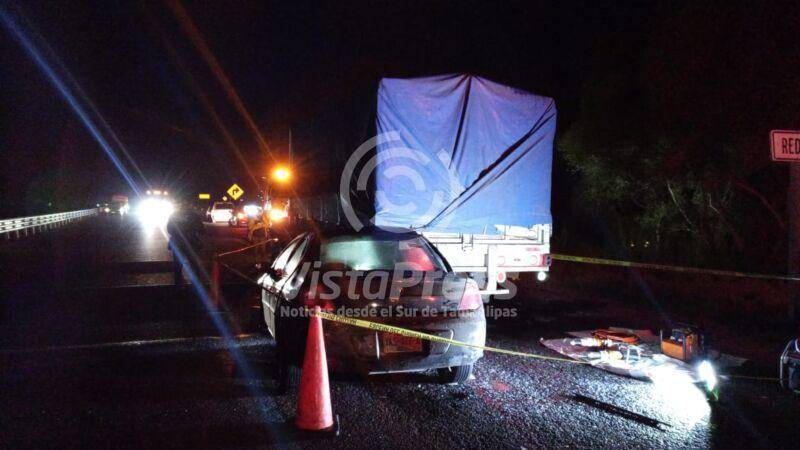 Tampico, TAM. Una mujer muerta, dos menores de edad y dos adultos lesionados, además de daños materiales de cuantía fue el saldo de fuerte choque registrado en el Libramiento Poniente la noche de este lunes.
