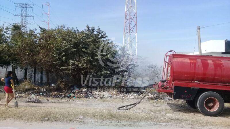 Altamira, Tam. El incendio de basura y llantas en desuso en un terreno baldío movilizó al cuerpo de Bomberos de Altamira, luego de que se levantaron grandes estelas de humo visibles desde diversos puntos de la ciudad.