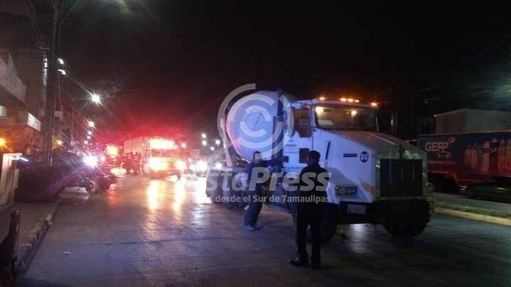 Tampico, Tam. Una conductora de un vehículo compacto resultó con algunos golpes, luego de que su frágil unidad fuera embestida por un camión revolvedora de concreto
