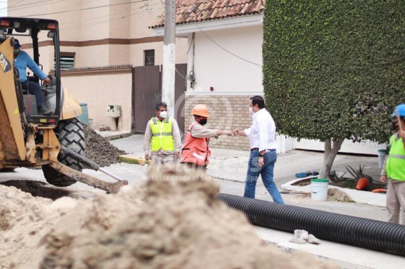 Acompañado de personal de la Gerencia Técnica, el gerente general pudo constatar los avances que se llevan en esta obra donde serán sustituidos 25 metros de línea general de drenaje de 12 pulgadas de diámetro, ampliando la dimensión debido a que la tubería anterior de 8 pulgadas ya era insuficiente para el caudal de aguas residuales que se conducen en esa colonia.