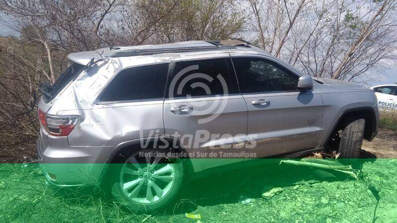 Se trata de una camioneta de la marca Gran Cherokee Jeep en color gris sin matricula, aparentemente de procedencia americana, misma que quedó a un costado de la carretera y con las cuatro llantas sobre el suelo.