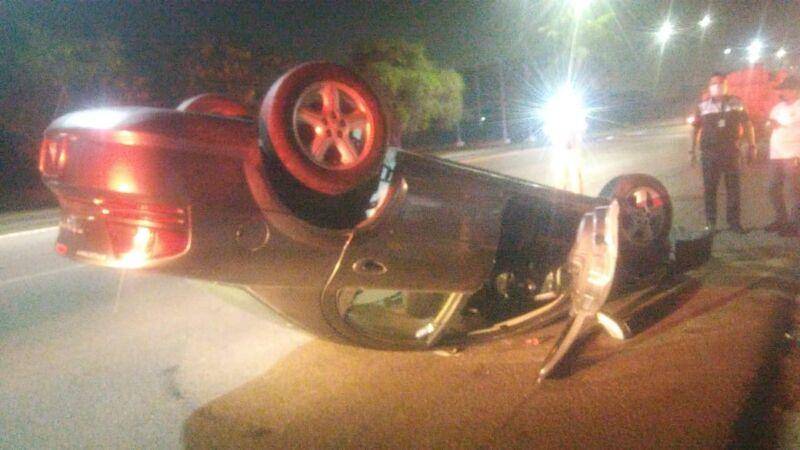 Tampico, Tam. Una dormitara casi le cuesta la vida al conductor de un vehículo luego de que volcar frente al Aeropuerto Internacional «Francisco Javier Mina».