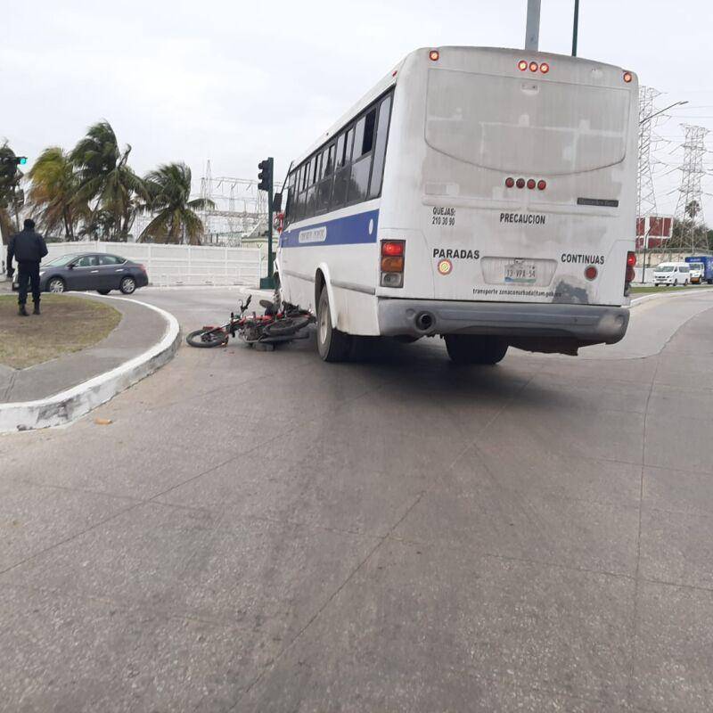 Tampico, Tam. Un motociclista resultó con una pierna fracturada al ser embestido por un autobús urbano; ambos se desligaban de la responsabilidad.