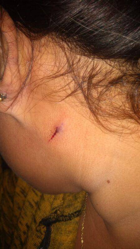 La mujer identificada como Coral «B» presentaba una herida punzocortante en el cuello, por lo que se solicitó la presencia de los cuerpos de emergencias, llegando paramédicos de la Cruz Roja, mismos que le dieron los primeros auxilios, considerando que no era necesario el traslado a un hospital.
