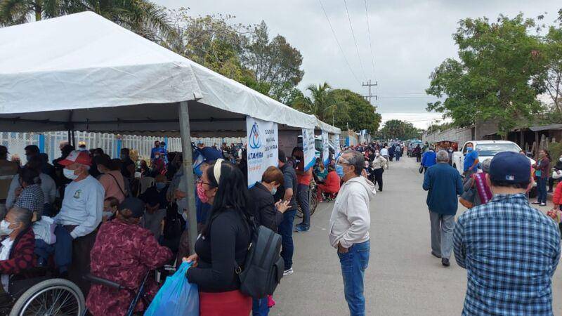 Este miércoles, al ser el octavo día de vacunación, por la mañana ya se presentaba una fila de al menos un kilómetro de distancia, esto luego de que mucha gente de otros municipios está llegando para aprovechar y vacunarse.