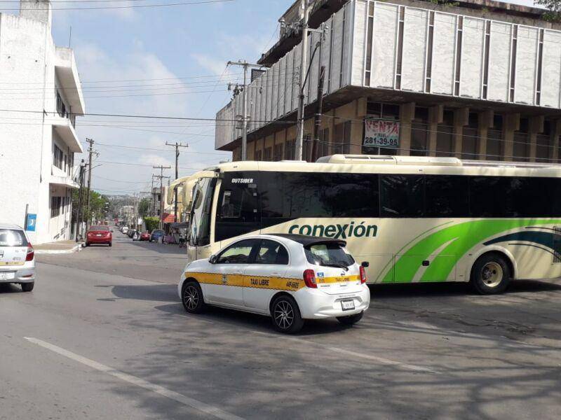 Esto ocurrió en el cruce con la calle Venustiano Carranza de la Zona Centro de la ciudad, en donde el vehículo de la marca Dina de la línea Conexión con destino a Poza Rica se pasó el alto obligatorio siendo impactado por el carro habilitado como taxi de la marca Nissan March.