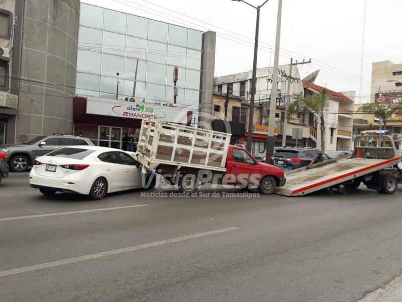 Tampico, Tam. Daños materiales superiores a los 100 mil pesos y el susto de su vida de los ocupantes de tres vehículos fue el resultado de fuerte encontronazo suscitado la tarde de este martes en la Avenida Hidalgo.