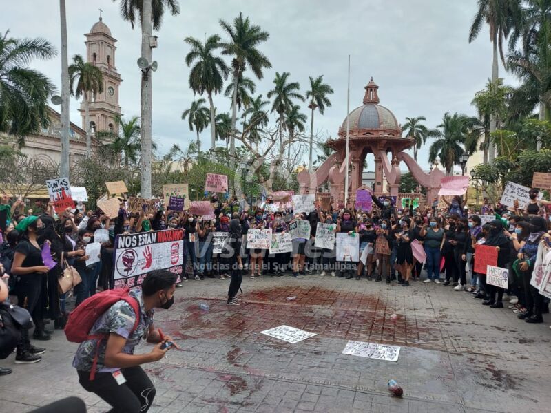 Cientos de mujeres gritando frases como «El patriarcado se va a caer», «Ni una mexicana más», «Yo sí te creo», «No estás sola» «Vivas las queremos», «Justicia», «El Estado opresor es un macho violador», partieron a las 3:30 de la tarde de la avenida Hidalgo, a la altura de Walmart Alijadores hasta llegar a la calle Altamira donde siguieron su recorrido sin dejar de gritar y mostrando sus pancartas.